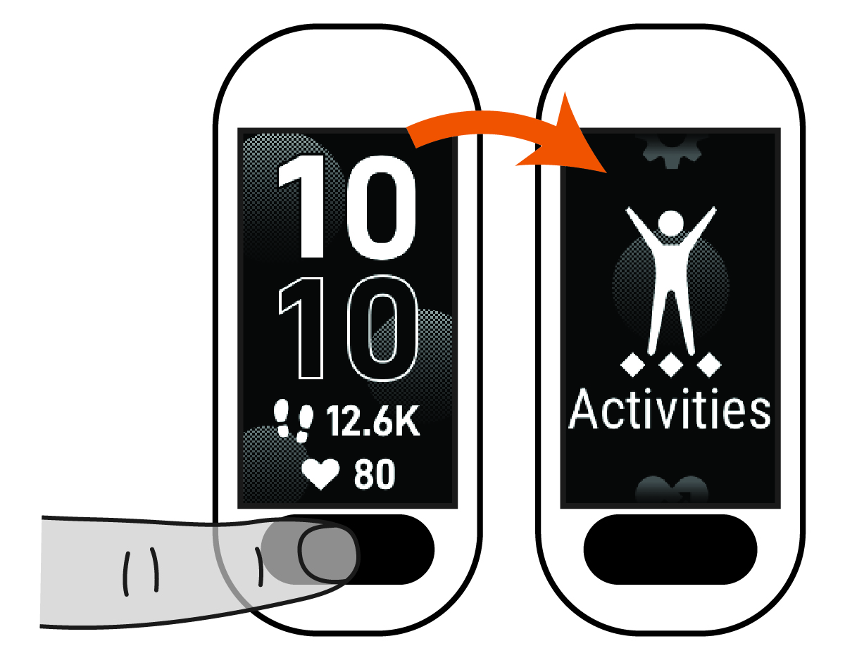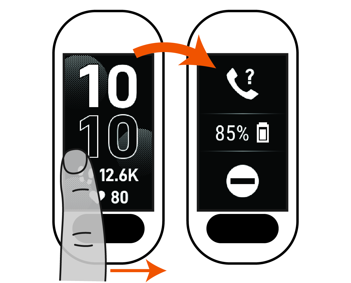 Viewing Widgets and Menus From the watch face, press to view the main menu. From the watch face, swipe right to view the controls menu. From the watch face, swipe up or down to view the widgets. HomeIntroductionViewing Widgets and Menus