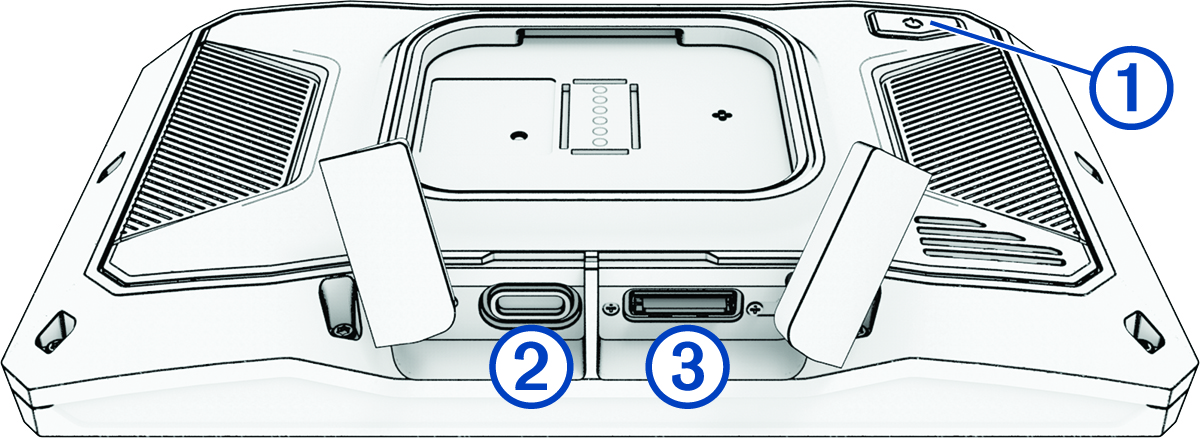 裝置介紹 ① 電源鍵 ② USB 電源及資料連接埠 ③ microSD 記憶卡卡槽 開啟或關閉裝置鎖定/解鎖觸控螢幕取得 GPS 訊號狀態列圖示說明使用螢幕按鈕調整音量調整螢幕亮度變更鍵盤首頁開始使用裝置介紹