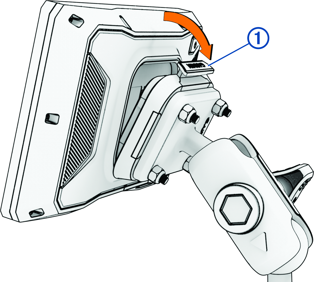 固定座上的卡扣 ① 會在裝置完全卡入後回到原位。