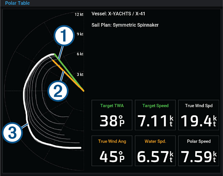 The chartplotter is preloaded with a set of polar table data you can use. You can also upload a custom polar-table data file.