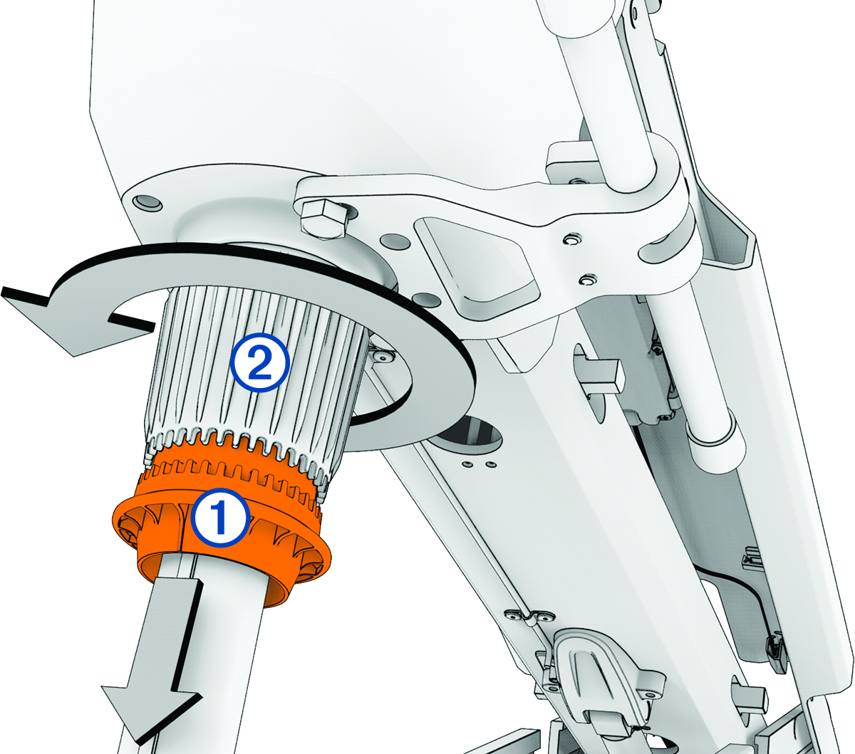 If you are stowing the trolling motor, move the motor to the stowed position and make sure the motor rests on the metal rails near the edge of the bow (Stowing the Motor from the Deployed Position).