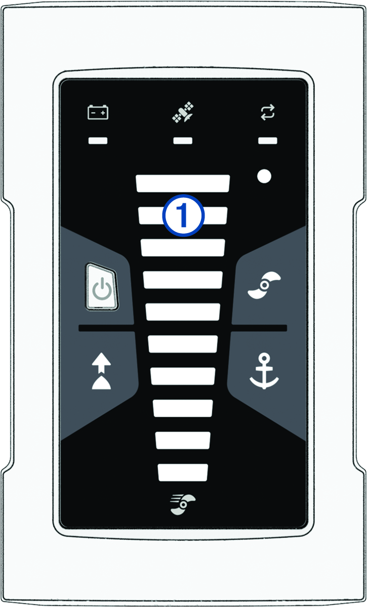 Green: forward thrust speed. Red: reverse thrust speed. The number of bars represents the propeller or cruise control speed (Adjusting the Speed of the Motor). NOTE:
