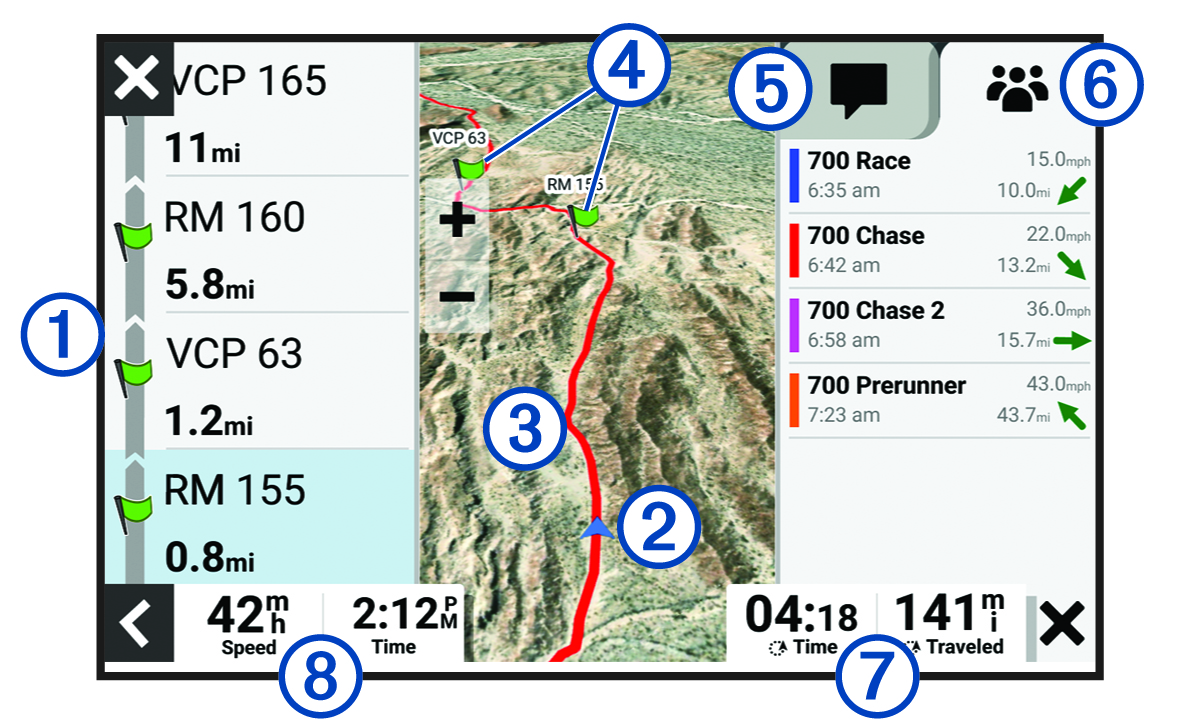 As you travel, the device displays your map location and the waypoints ahead of you on your route.