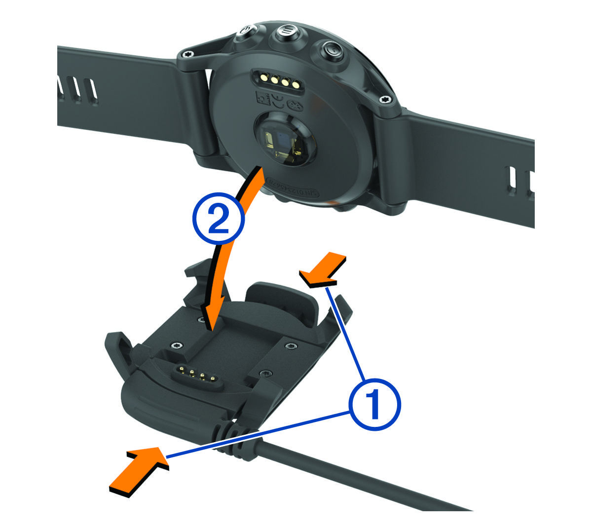 4. Wenn die Kontakte aufeinander ausgerichtet sind, setzen Sie das Gerät in die Klemme ein Beschriftung Nummer zwei, und lassen Sie die Greifarme los, damit das Gerät sicher sitzt.