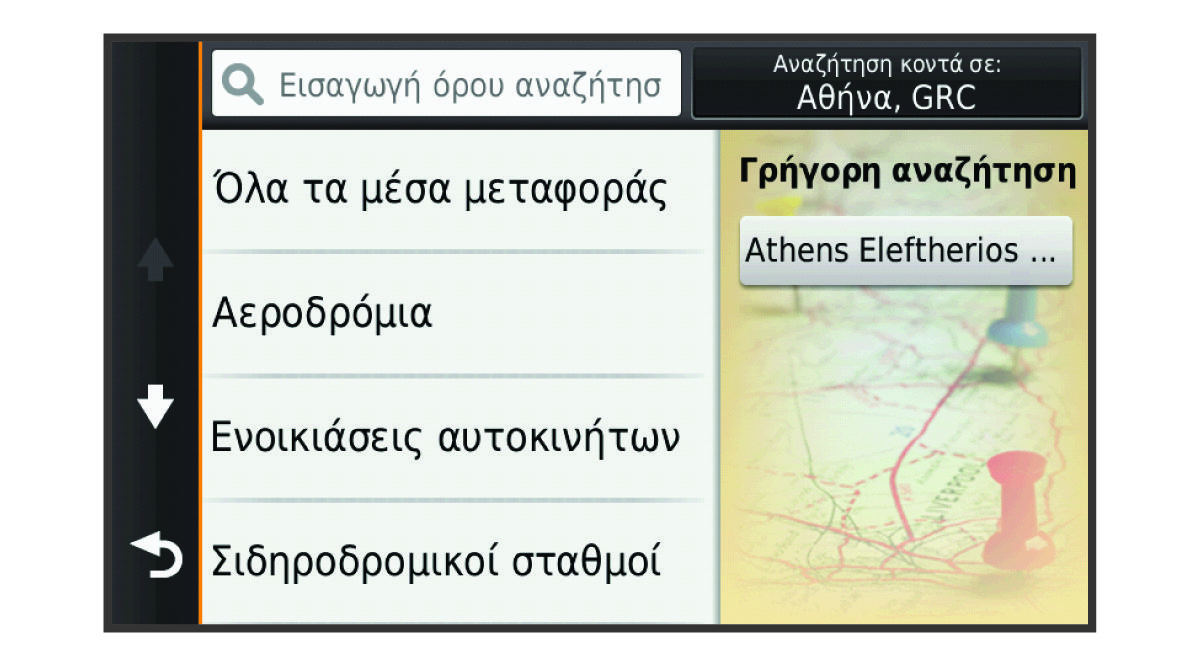 Αφού κάνετε αναζήτηση για ένα σημείο ενδιαφέροντος, σε ορισμένες κατηγορίες ενδέχεται να εμφανιστεί μια λίστα Γρήγορης αναζήτησης, η οποία περιλαμβάνει τους τέσσερις τελευταίους προορισμούς που επιλέξατε.