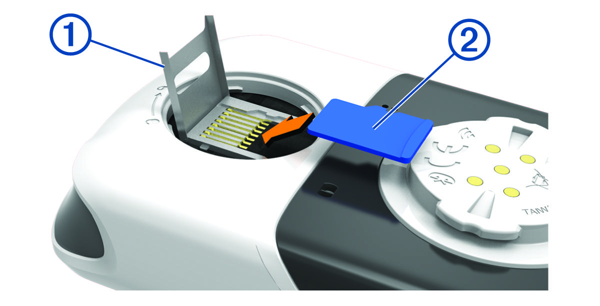 You can install a memory card for additional storage or to install pre-loaded maps. The device supports microSD® or microSDHC memory cards up to 32 GB, formatted to FAT32.