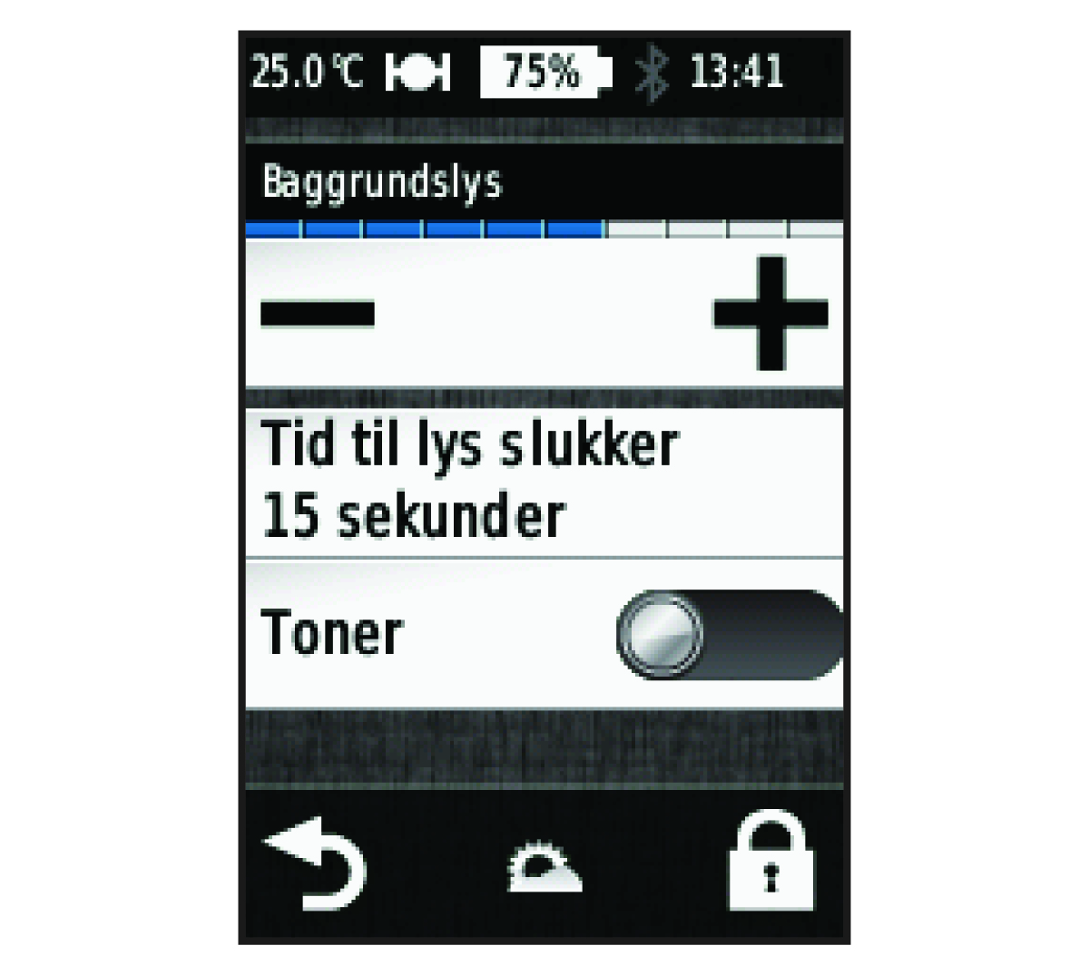 Brug af baggrundslys Du kan til enhver tid vælge et hvilket som helst sted på skærmen for at aktivere baggrundslyset. Vælg for at vælge lysstyrken for baggrundslyset samt timeout. Overordnet emne: TasterHjemIntroduktionAktivering af enhedenTasterBrug af baggrundslys