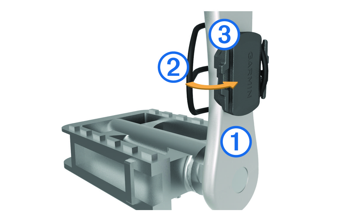 - Plaats de platte kant van de cadanssensor aan de binnenkant van de pedaalarm, aan de kant waar niet de aandrijving zit.