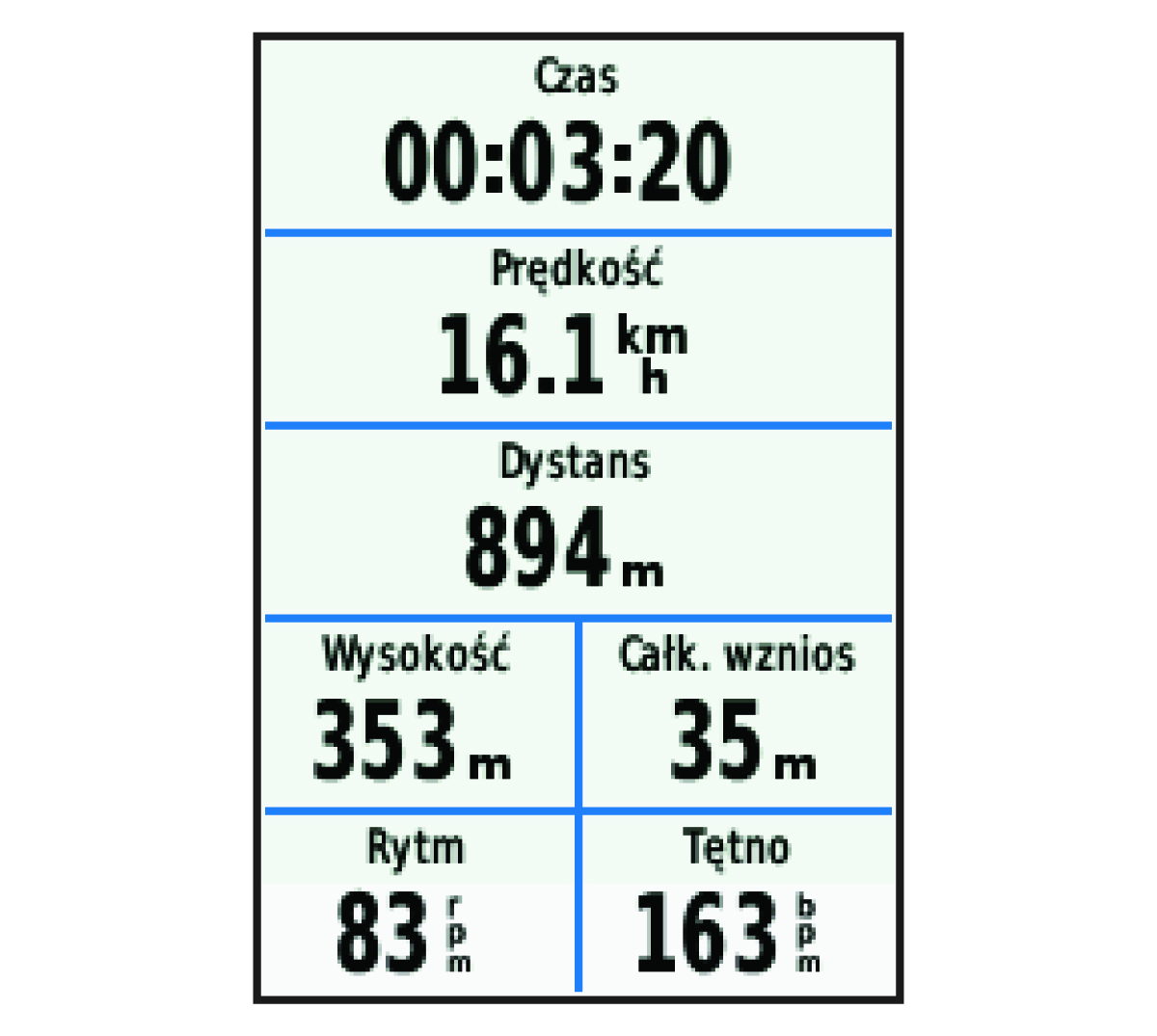 4. Przesuń palcem po ekranie, aby uzyskać dostęp do dodatkowych stron danych.