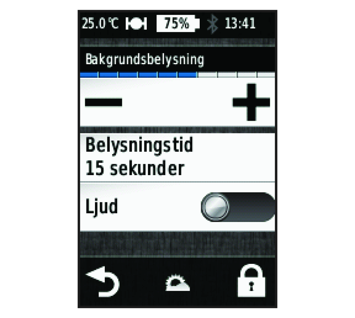 Skärmens bakgrundsbelysning Tryck när som helst på skärmen om du vill slå på bakgrundsbelysningen. Tryck på för att justera bakgrundsbelysning och tidsgräns. Huvudämnen: KnapparHemIntroduktionSlå på enhetenKnapparSkärmens bakgrundsbelysning
