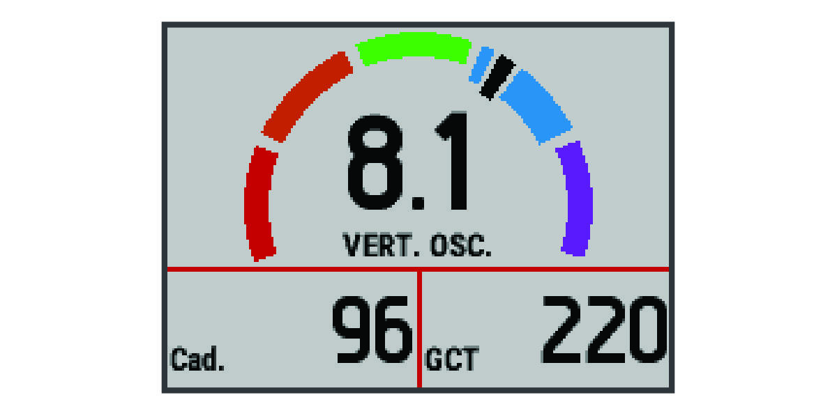 DOWN при просмотре экрана динамических характеристик бега, чтобы просмотреть свои показатели.