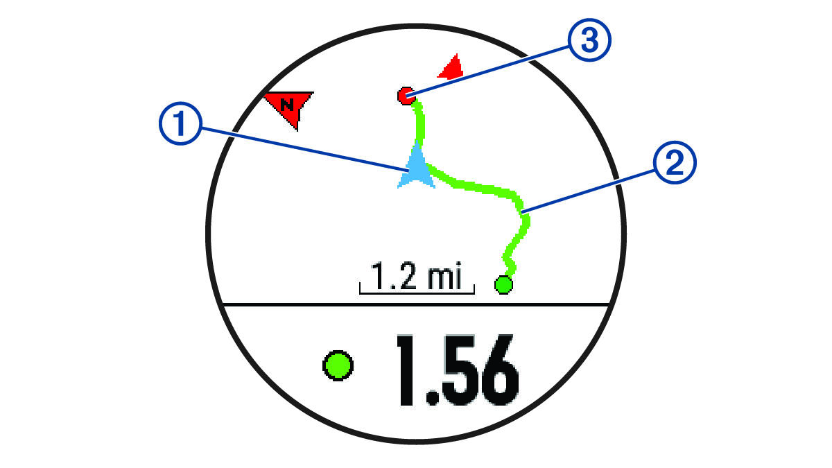 Vous pouvez revenir au point de départ de votre activité en cours en suivant une ligne droite ou le même chemin que vous avez emprunté à l'aller. Cette fonction est uniquement disponible pour les activités utilisant des données GPS.