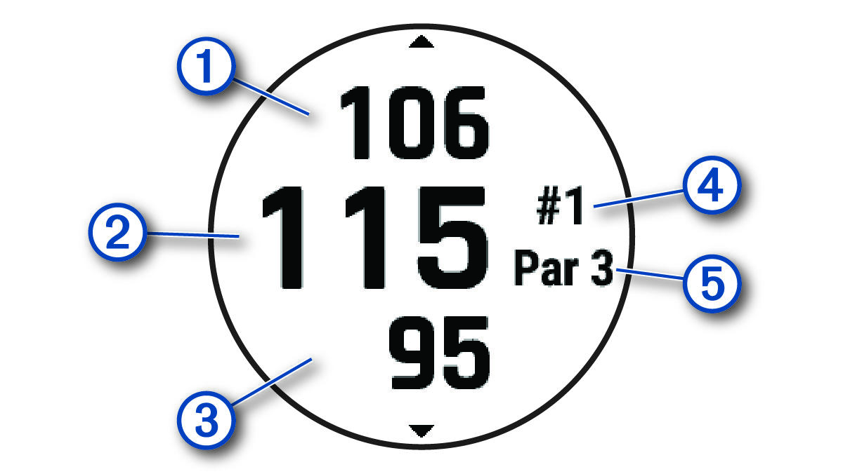 Capture d'écran de la vue du trou de golf en mode Grands chiffres avec légendes