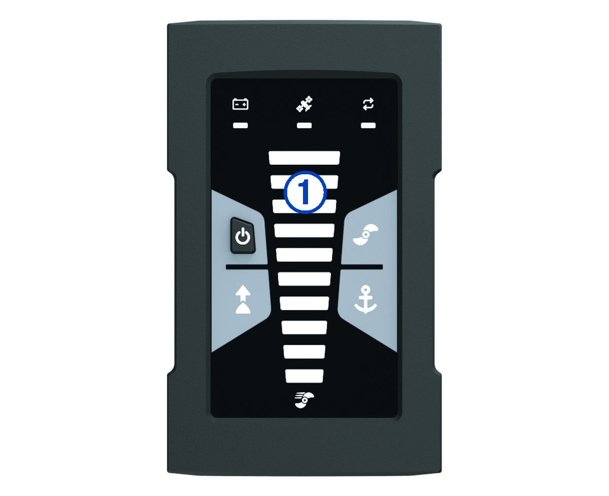 Liczba pasków przedstawia prędkość śruby napędowej lub tempomatu (Regulowanie prędkości silnika zaburtowego). |