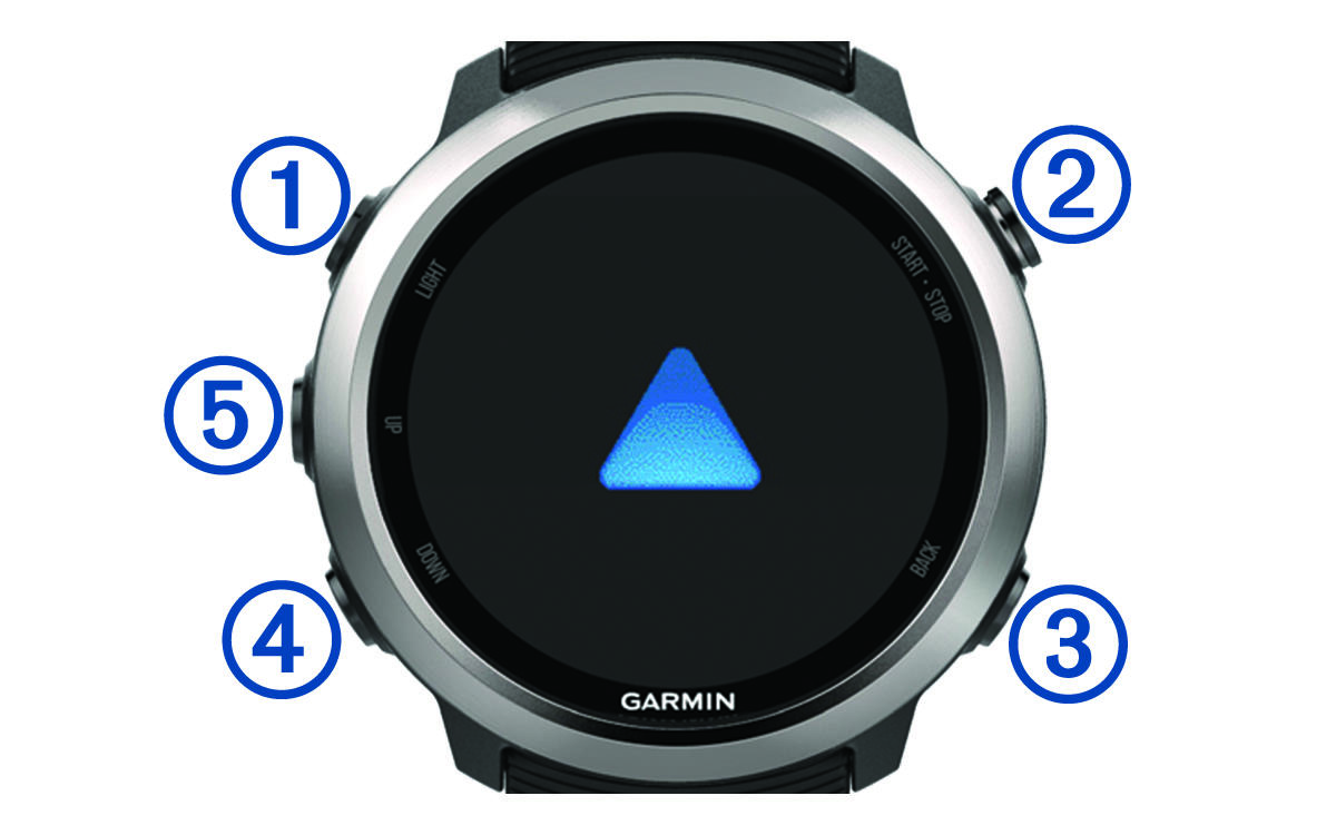 Select to turn the device on. Select to turn the backlight on and off. Hold to view the controls menu. |