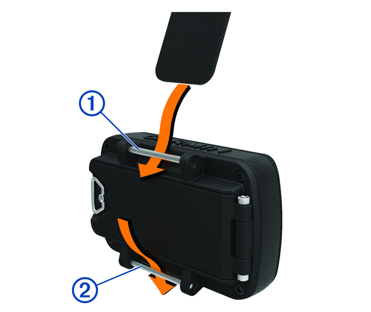 Attaching the Wrist Strap Insert the strap behind the pin at the top of the device. Pull the strap length through to the end. Insert the strap behind the pin at the bottom of the device. If necessary, attach the strap extender to the wrist strap. Parent Topic: IntroductionHomeIntroductionAttaching the Wrist Strap