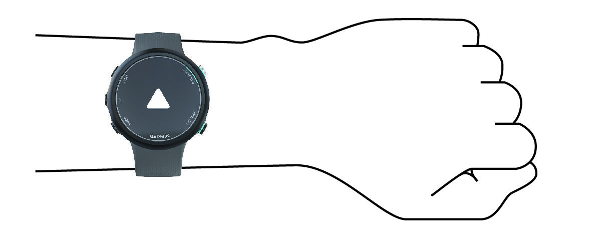 - Tragen Sie das Gerät über dem Handgelenk. HINWEIS: Das Gerät sollte dicht anliegen, aber angenehm zu tragen sein. Sie erhalten genauere Herzfrequenzdaten, wenn sich das Gerät während des Schwimmens oder des Trainings nicht bewegt.