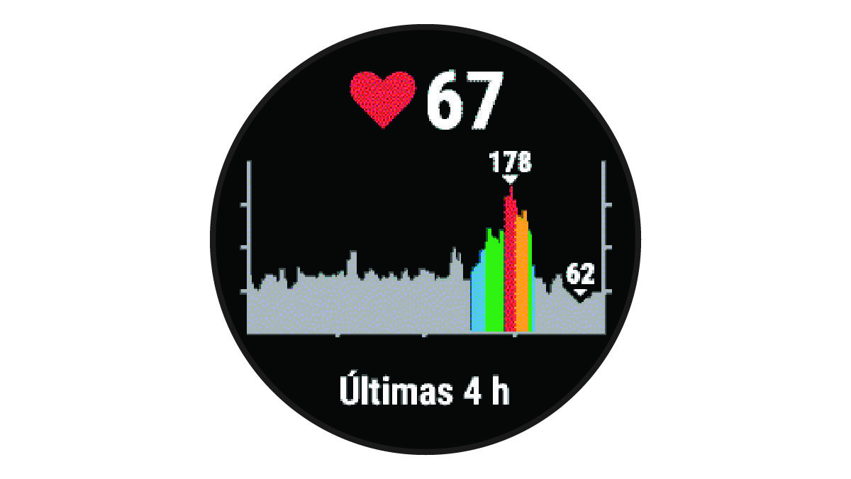 O widget exibe sua frequência cardíaca atual em batidas por minuto (bpm) e um gráfico de sua frequência cardíaca nas últimas quatro horas.