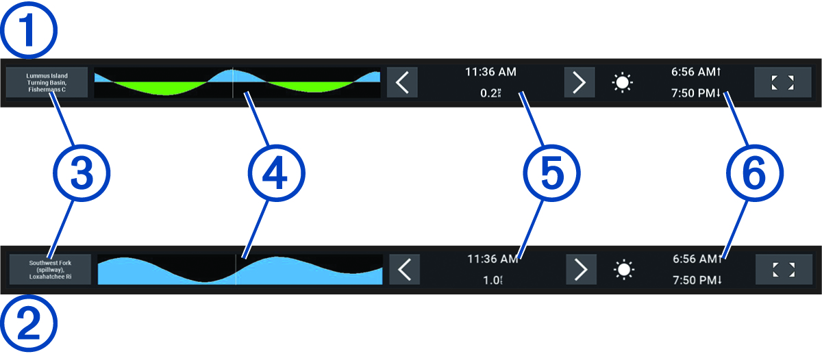 選択した潮汐または潮流の観測点の名前。 別の潮汐または潮流の観測点に変更する場合に選択します。 |