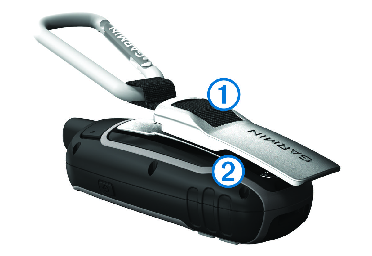 Attaching the Carabiner Clip Position the carabiner clip in the slots on the mounting spine of the device. Slide the carabiner clip up until it locks in place. Child Topics:Removing the Carabiner ClipParent Topic: Device InformationHomeDevice InformationAttaching the Carabiner Clip
