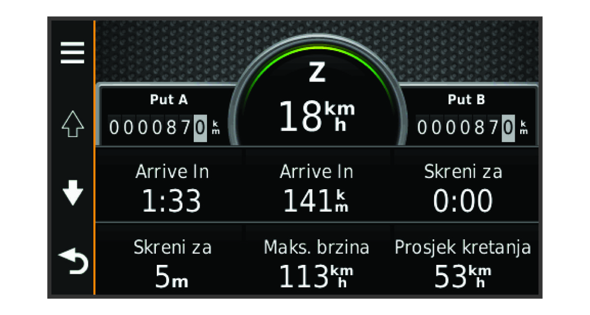 NAPOMENA: Ako se često zaustavljate, uređaj ostavite uključenim kako bi mogao točno izmjeriti vrijeme putovanja.