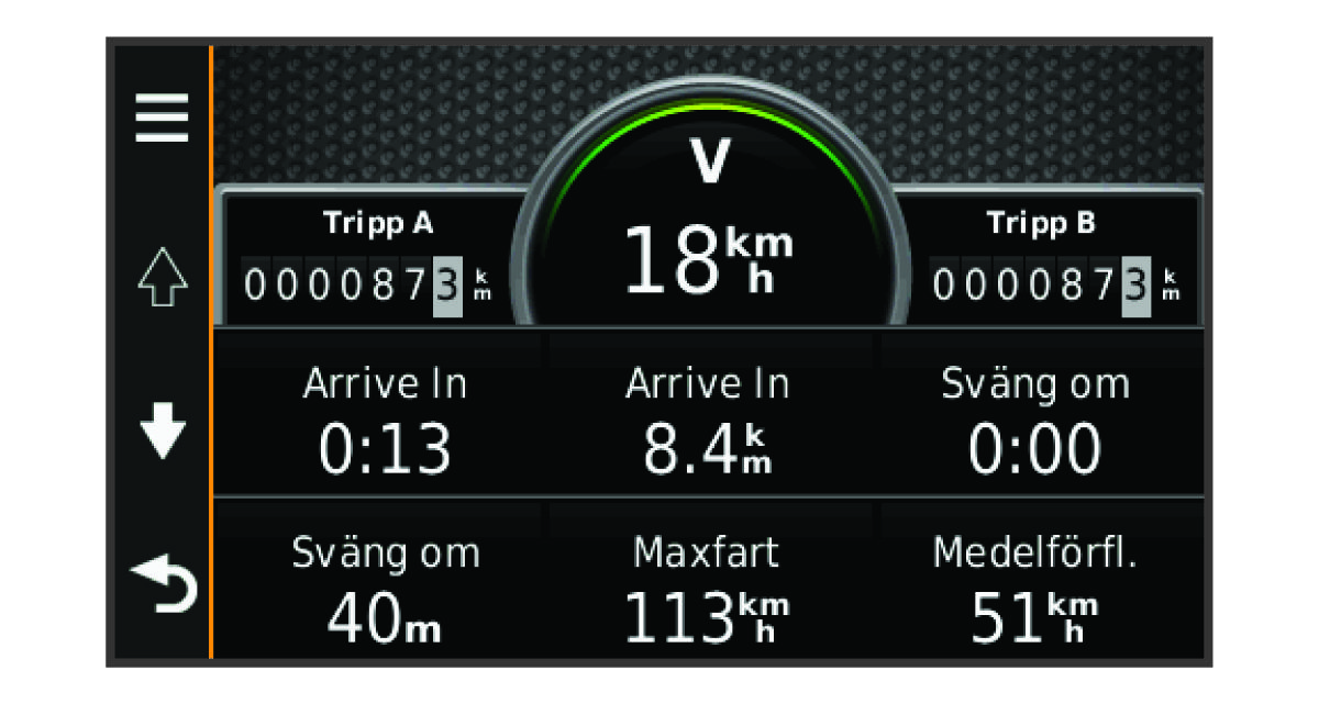 På trippinformationssidan visas din aktuella fart samt statistik om resan.