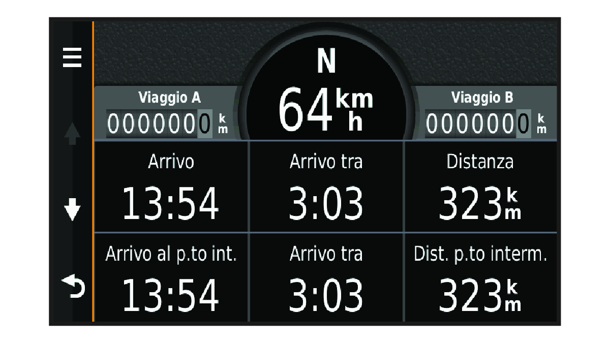 La pagina delle informazioni sul viaggio indica la velocità corrente e fornisce informazioni utili sul viaggio.