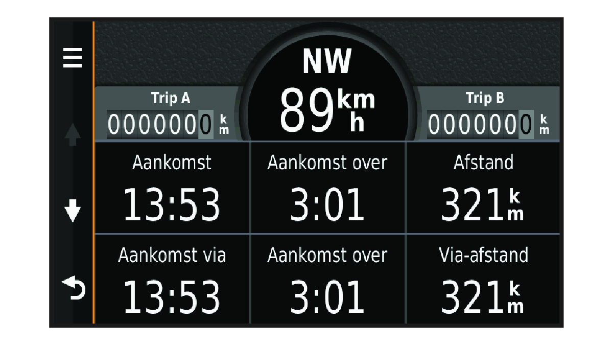 Op de reisinformatiepagina wordt uw huidige snelheid weergegeven en wordt nuttige informatie over uw reis gegeven.