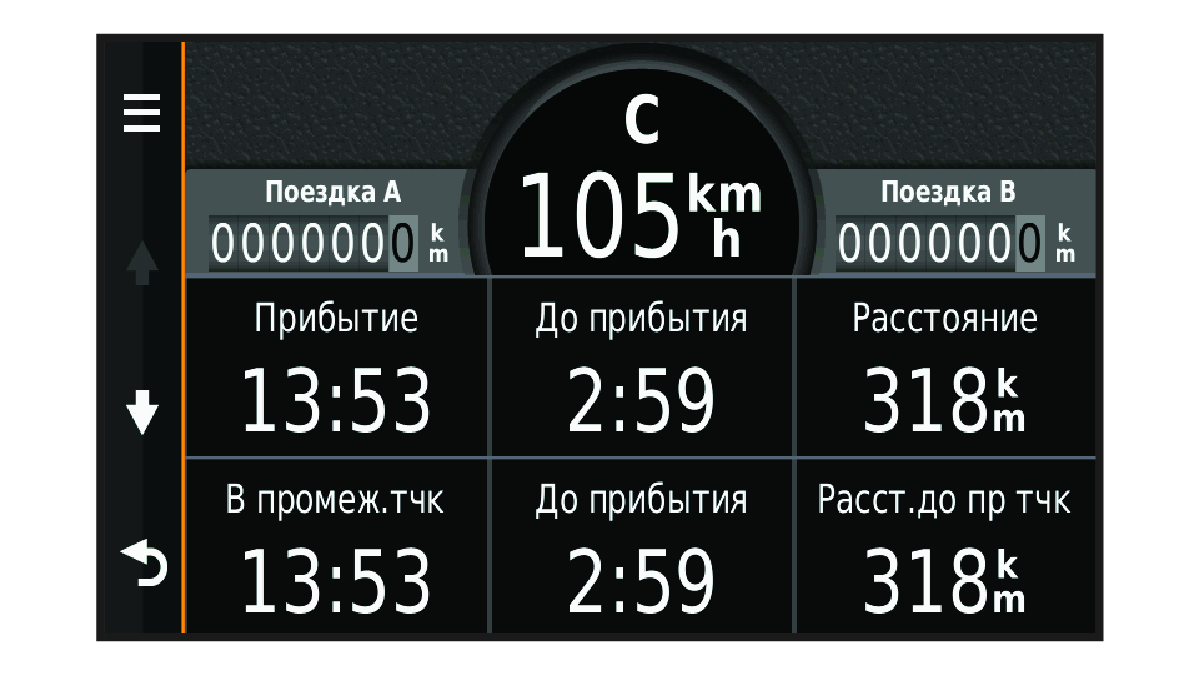ПРИМЕЧАНИЕ: Если поездка сопровождается частыми остановками, оставляйте устройство включенным для точного измерения затраченного времени в течение всей поездки.