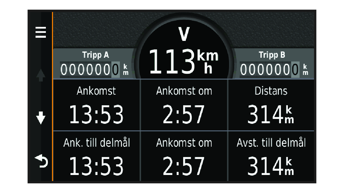 På trippinformationssidan visas din aktuella fart samt statistik om resan.