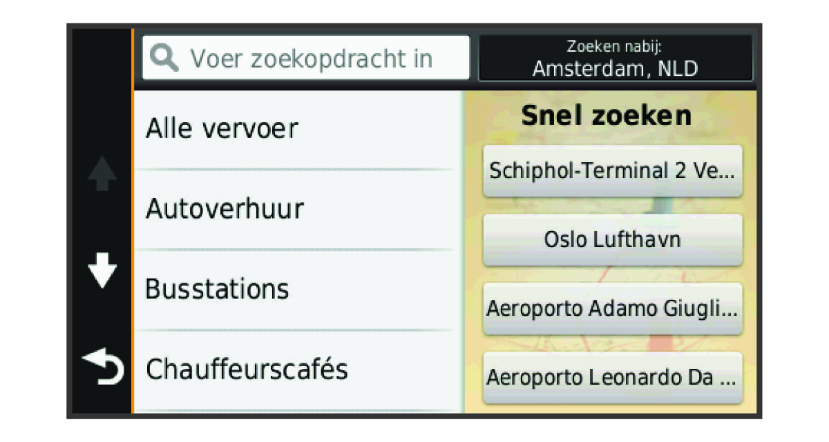 Nadat u naar een nuttig punt hebt gezocht, worden er mogelijk bepaalde categorieën in een snelzoeklijst weergegeven met de laatste vier bestemmingen die u hebt geselecteerd.