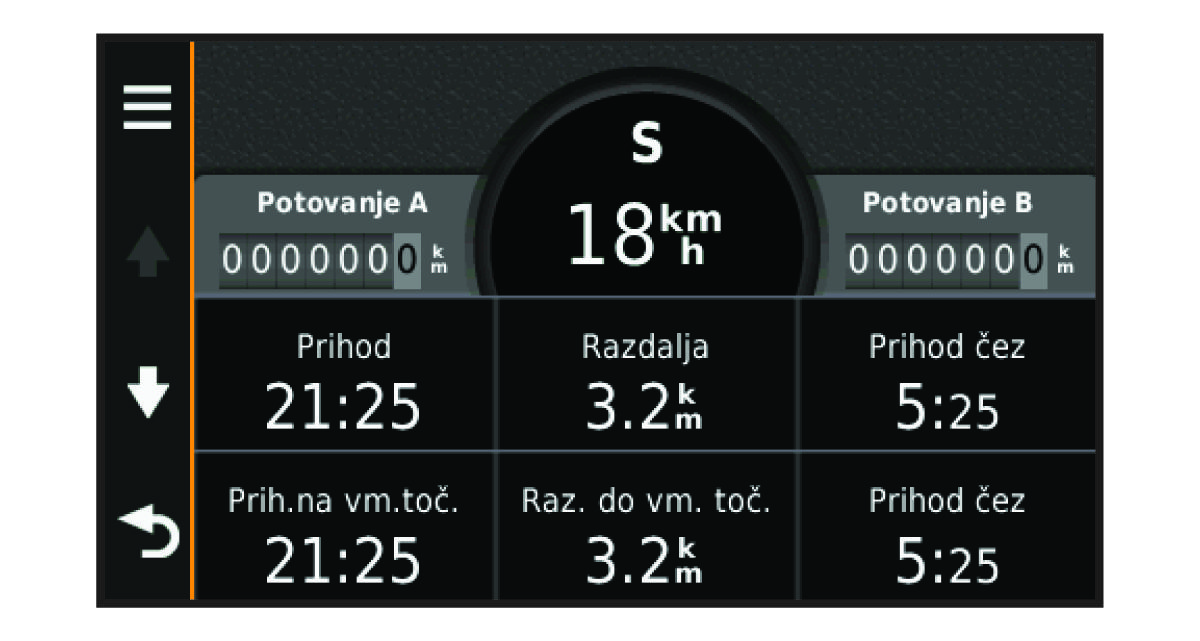 OPOMBA: Če se pogosto zaustavljate, pustite napravo vklopljeno, da lahko natančno izmeri čas potovanja.