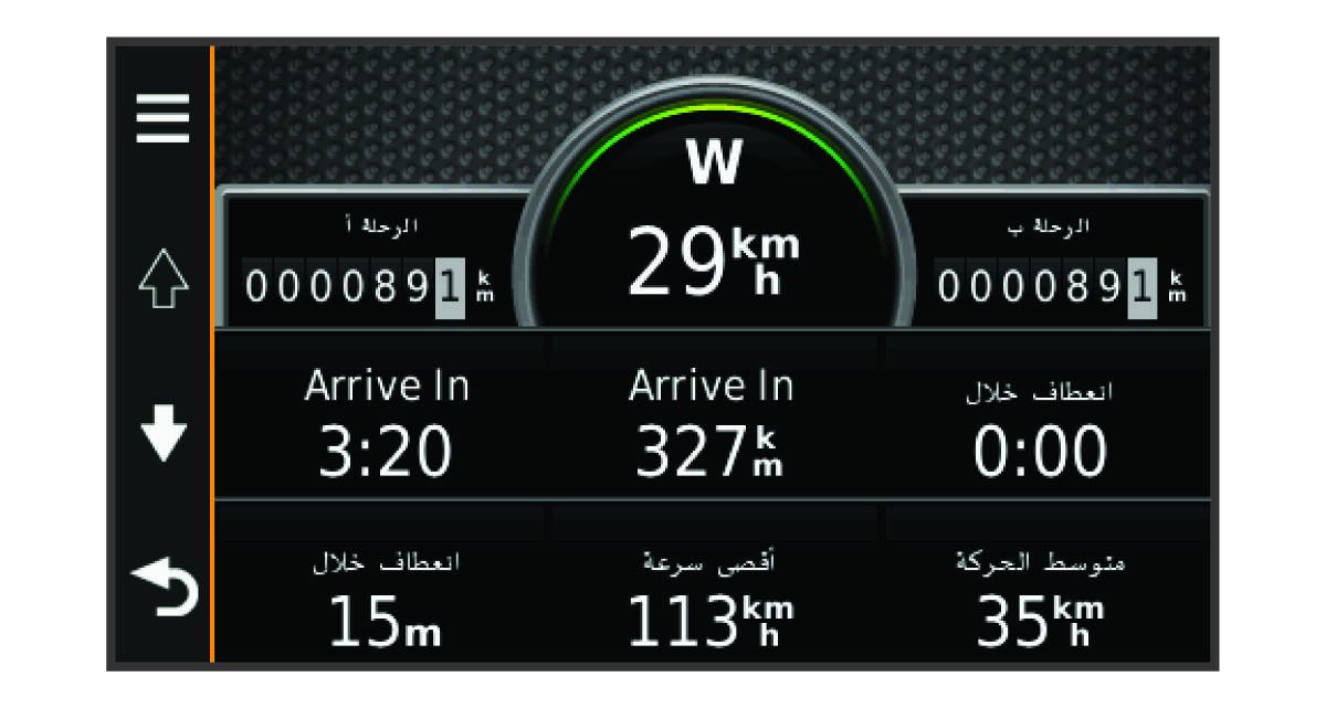 تعرض صفحة معلومات الرحلة سرعتك الحالية وتوفر إحصاءات حول رحلتك.