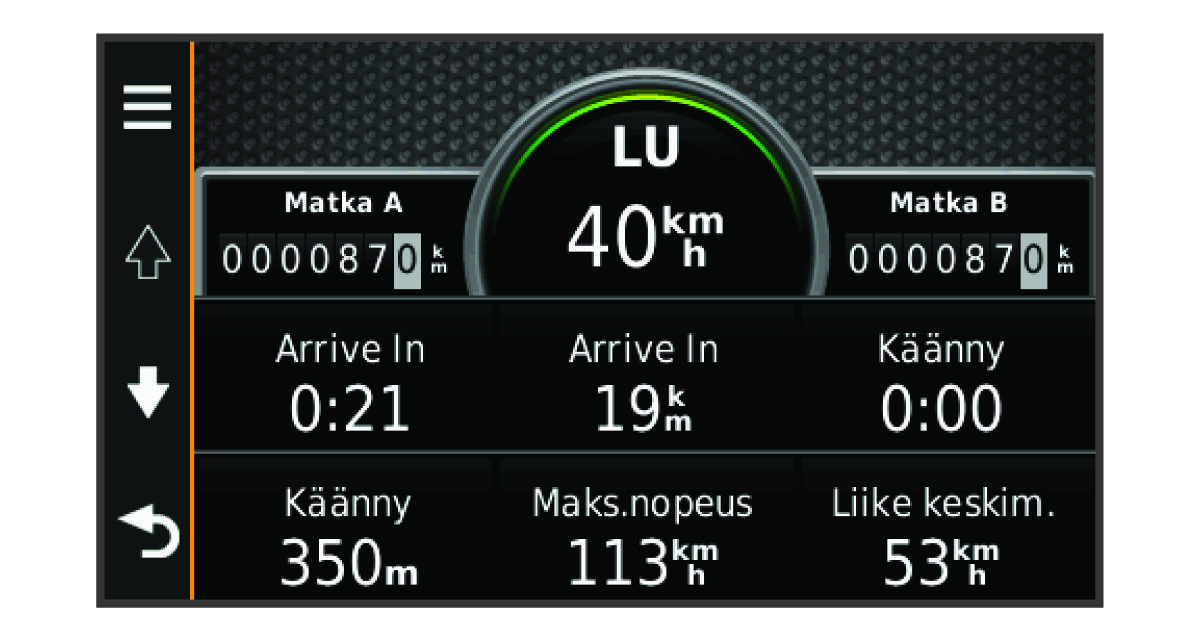 Matkan tietosivulla näkyy nykyinen nopeus. Lisäksi sillä on tietoja matkasta.