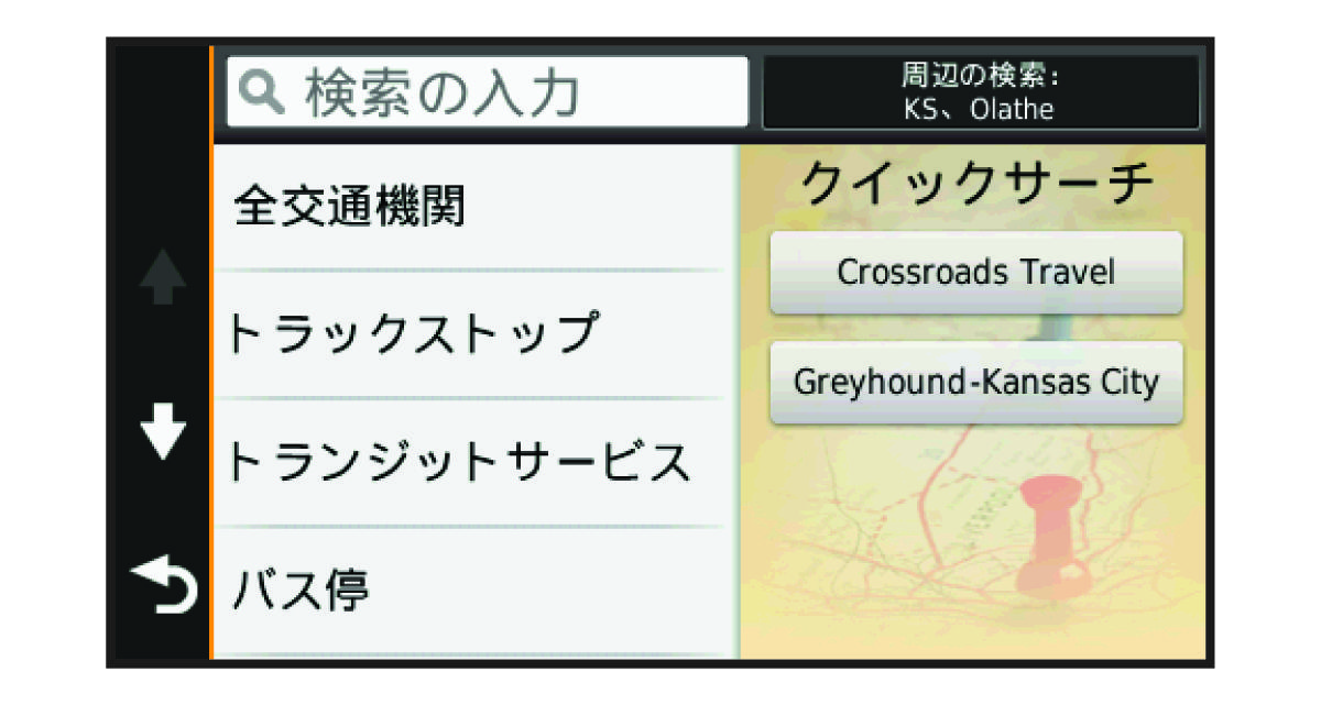 カテゴリー内を検索する ジャンル別施設の検索後、ある特定のカテゴリーに、最後に選択した目的地からさかのぼって3か所を含むクイックサーチリストが表示される場合があります。 目的地検索を選択します。 カテゴリーを選択するか、または カテゴリーを選択します。 カテゴリーを選択します。 該当する場合は、クイックサーチリストから目的地を選択します。 必要に応じて、適切な目的地を選択します。 親トピック: カテゴリーを入力して位置を検索するホーム位置位置を検索するカテゴリーを入力して位置を検索するカテゴリー内を検索する