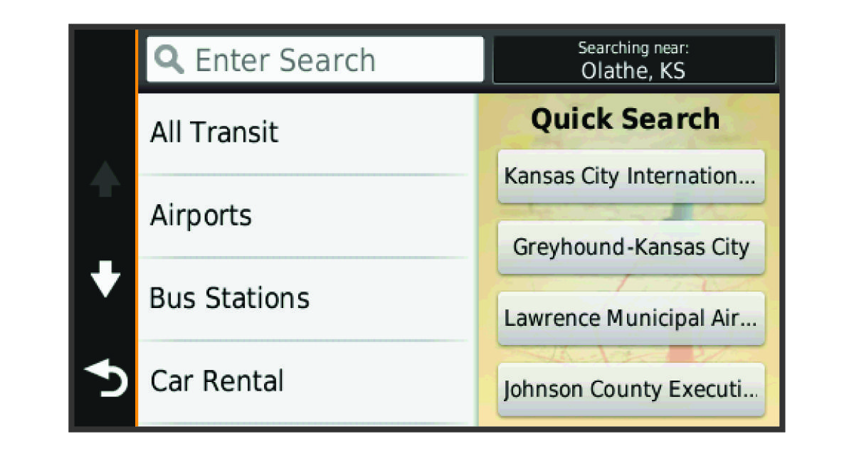 After you have performed a search for a point of interest, certain categories may display a Quick Search list that shows the last four destinations you selected.