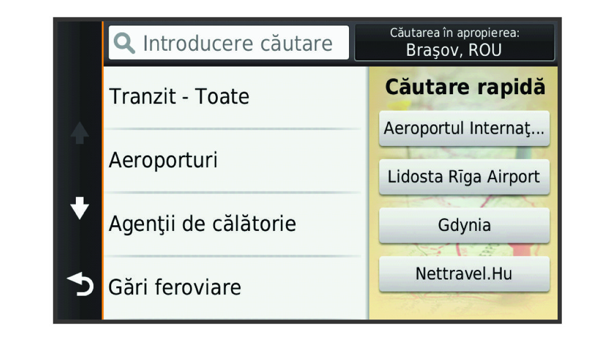 După ce aţi efectuat o căutare a unui punct de interes, anumite categorii pot afişa o listă de Căutare rapidă care afişează ultimele patru destinaţii pe care le-aţi selectat.