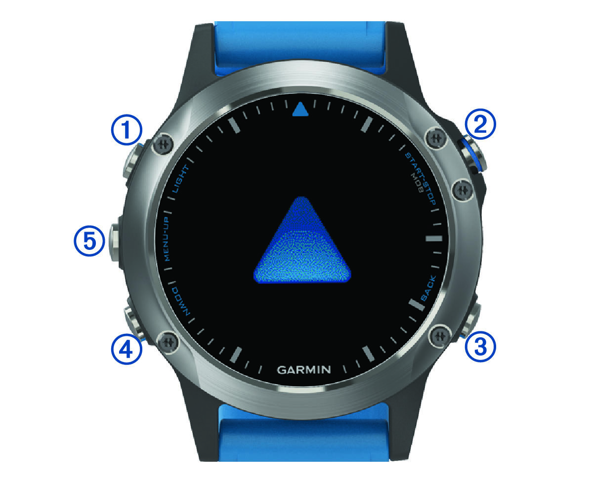 Select to view the activity list and start or stop an activity. Select to choose an option in a menu. Hold to mark your current location as a waypoint and activate navigation. |