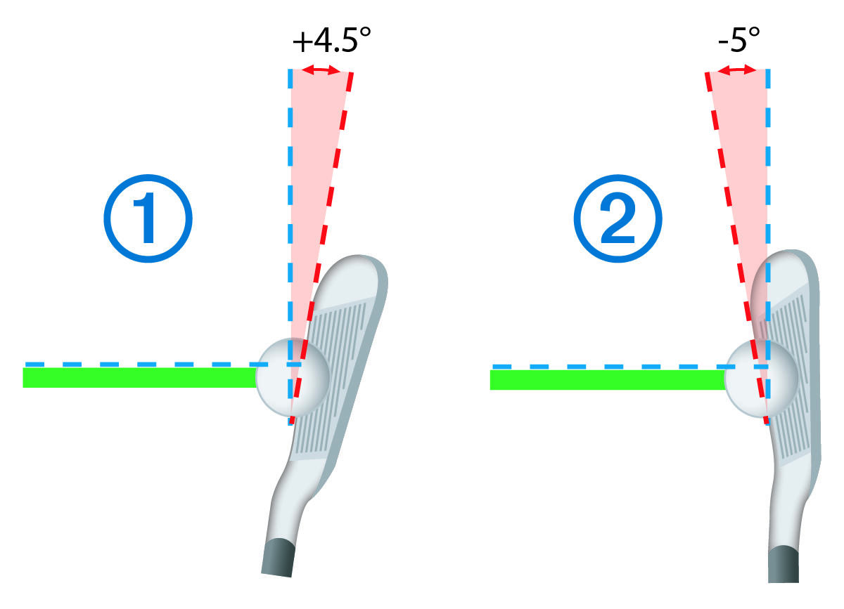 geeft aan hoe groot de hoek is waarop de club face naar u toe is gericht.