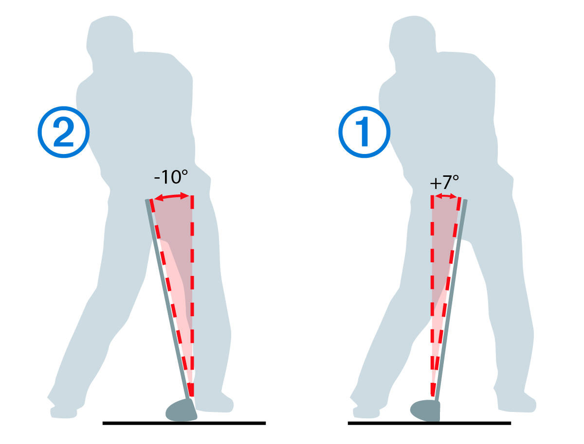 hoek waarop u de club vasthoudt bij het adresseren, gemeten vanuit een verticale hoek van 90 graden.