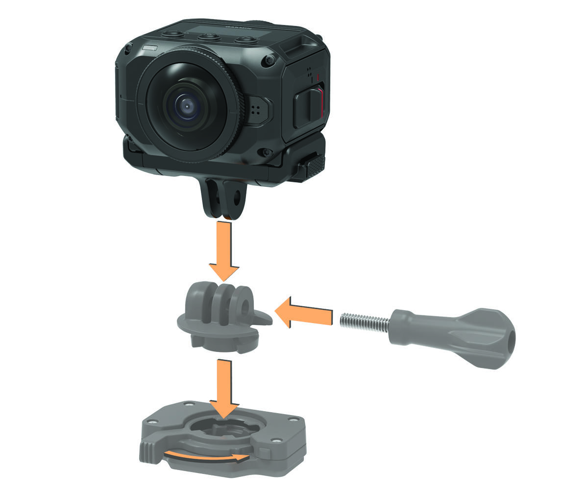 Puedes utilizar el soporte de sujeción para cámaras de acción incluido para instalar la cámara en accesorios de montaje para cámaras de acción VIRB® compatibles (no incluidos). Visita garmin.com/virb para adquirir soportes accesorios.