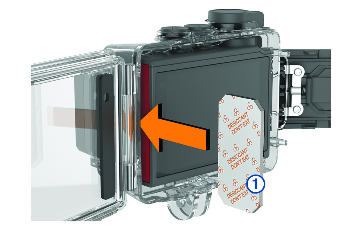 For the best clarity and image quality, you should install an anti-fog desiccant pack to reduce fogging inside the camera case or on the camera lens. A desiccant pack kit is included in the product box. Go to www.garmin.com/VIRB to purchase additional desiccant packs.