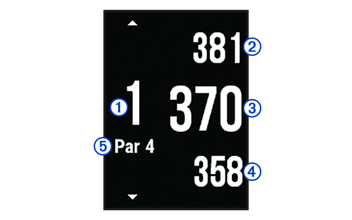 étant donné que l'emplacement du trou varie, l'appareil calcule la distance jusqu'au début, au milieu et au fond du green, mais pas jusqu'à l'emplacement du trou.