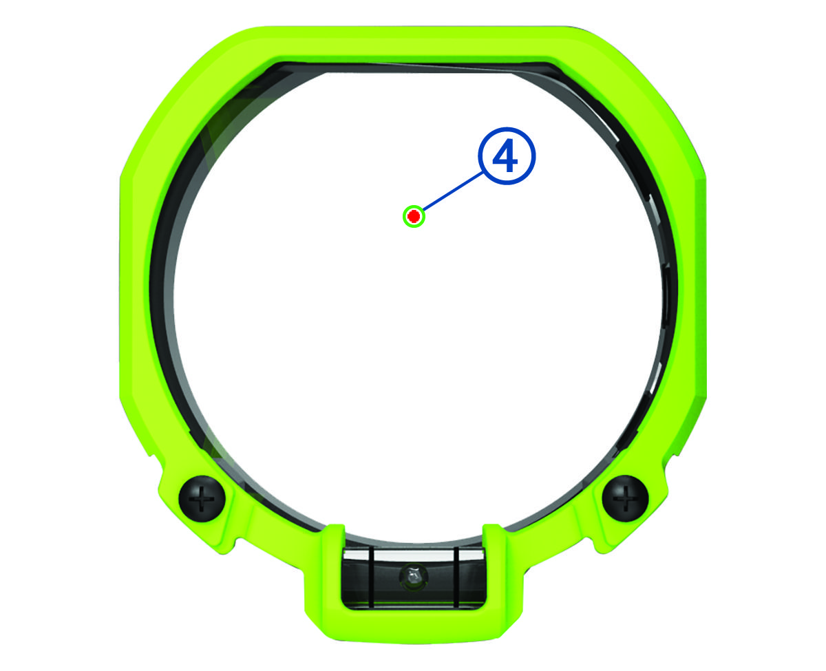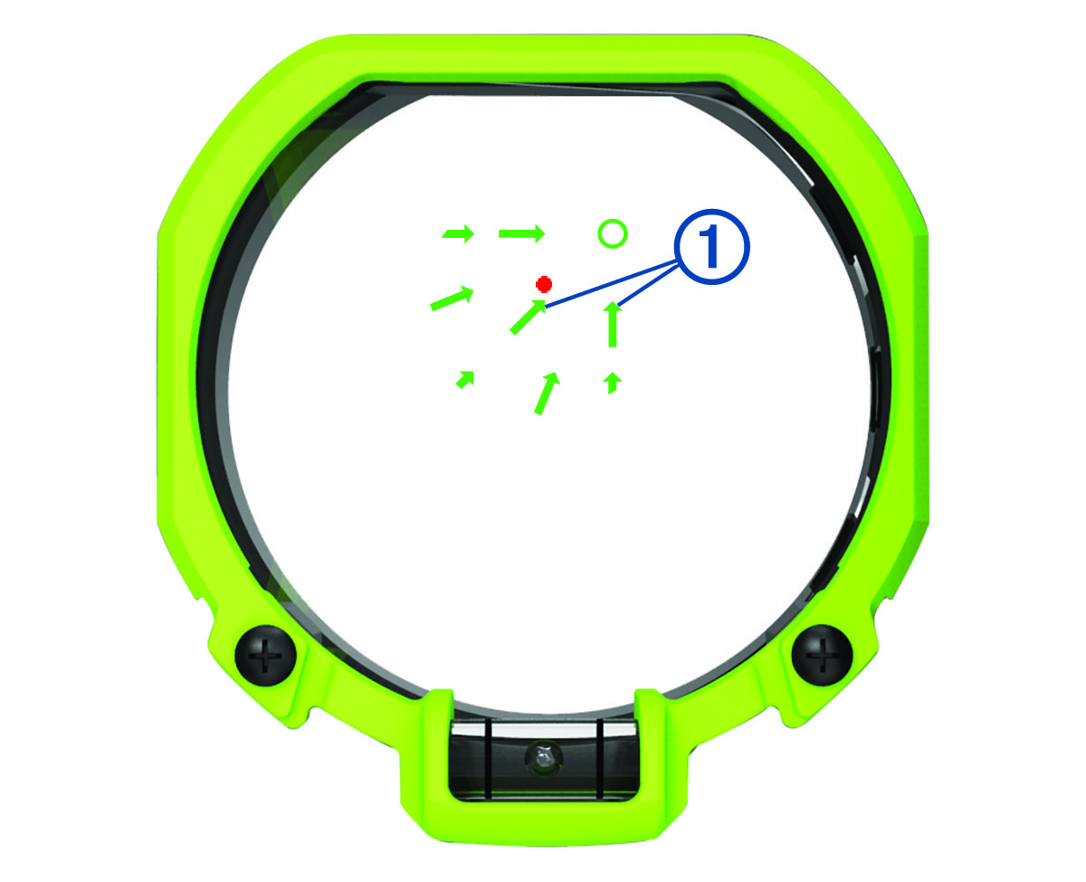 The circular rangefinder reticle indicates the direction the laser rangefinder is pointing. For best accuracy, you must align the circular rangefinder reticle with the primary pin.