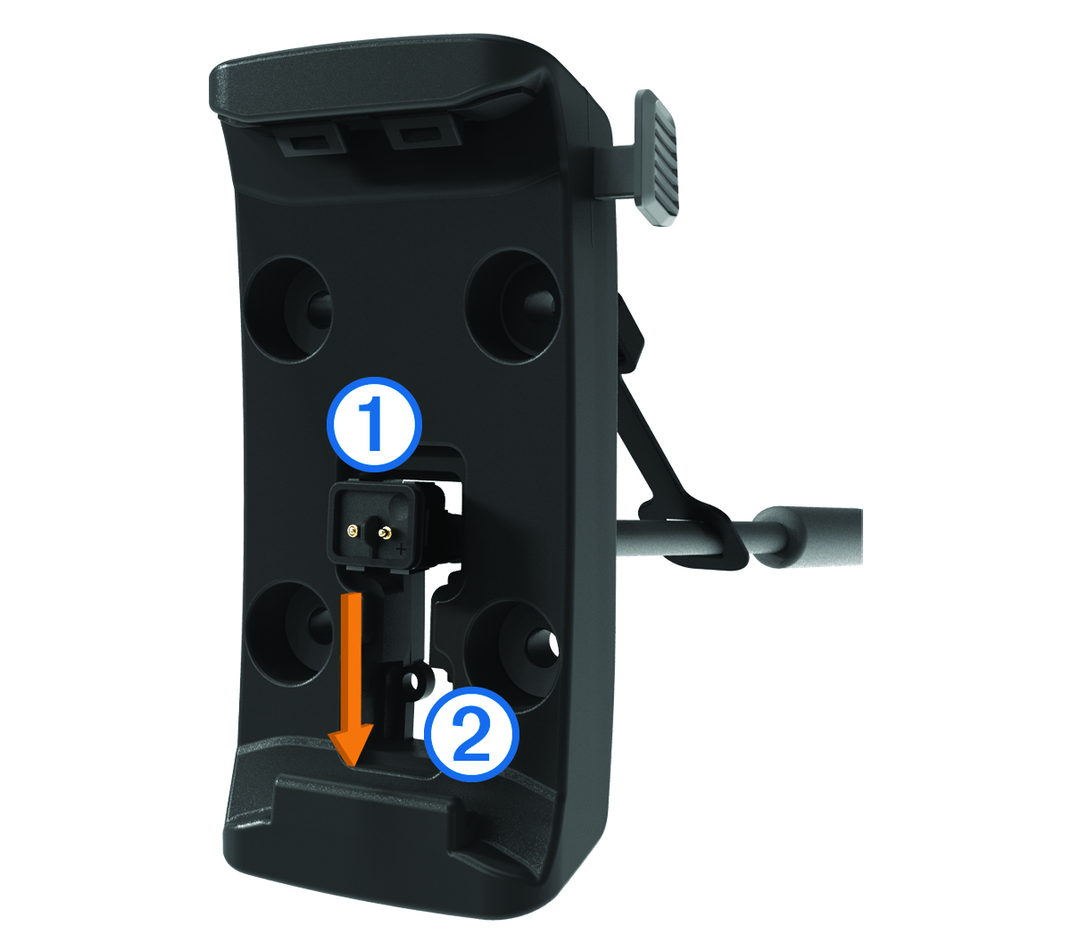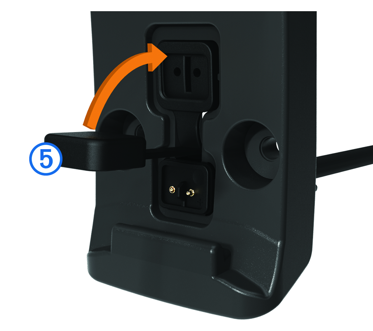 Upevnenie napájacích káblov k držiaku na motocykel Prestrčte konektor napájacieho kábla cez horný otvor na držiaku na motocykli. Kábel posuňte nadol k spodnej časti otvoru a ťahajte ho späť, kým ho nezatiahnete. Čiernu skrutku zaskrutkujte do zadnej strany držiaka , aby kábel držal pevne na mieste. Ochranný kryt prestrčte cez horný otvor a zatlačte ho do otvoru. Téma vyššej úrovne: Upevnenie zariadenia na motocykelDomovInštaláciaUpevnenie zariadenia na motocykelUpevnenie napájacích káblov k držiaku na motocykel