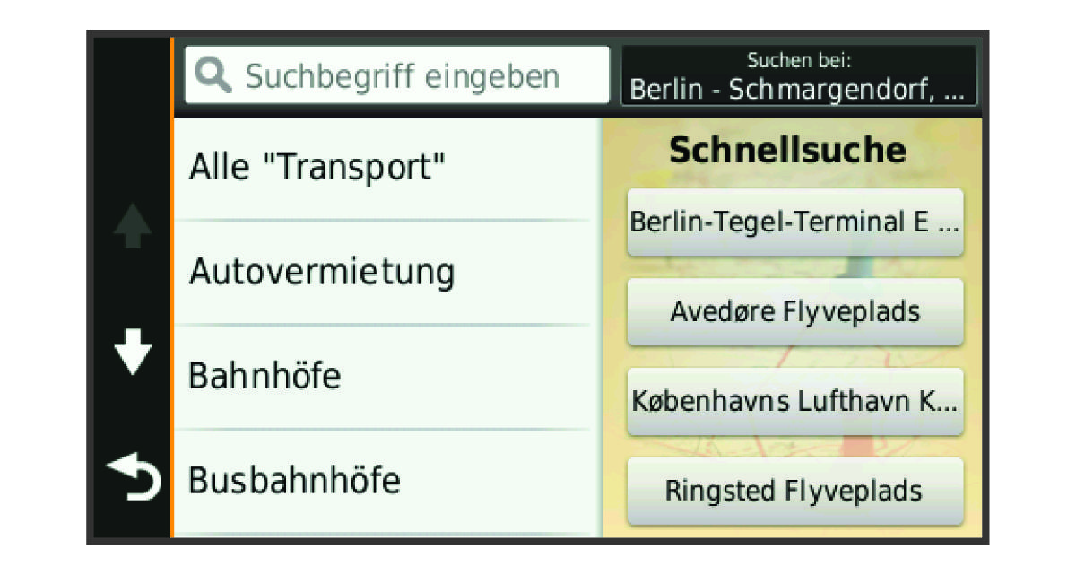 Nachdem Sie eine Suche nach einem Point of Interest durchgeführt haben, wird für einige Kategorien ggf. eine Liste für die Schnellsuche mit den letzten vier ausgewählten Zielen angezeigt.