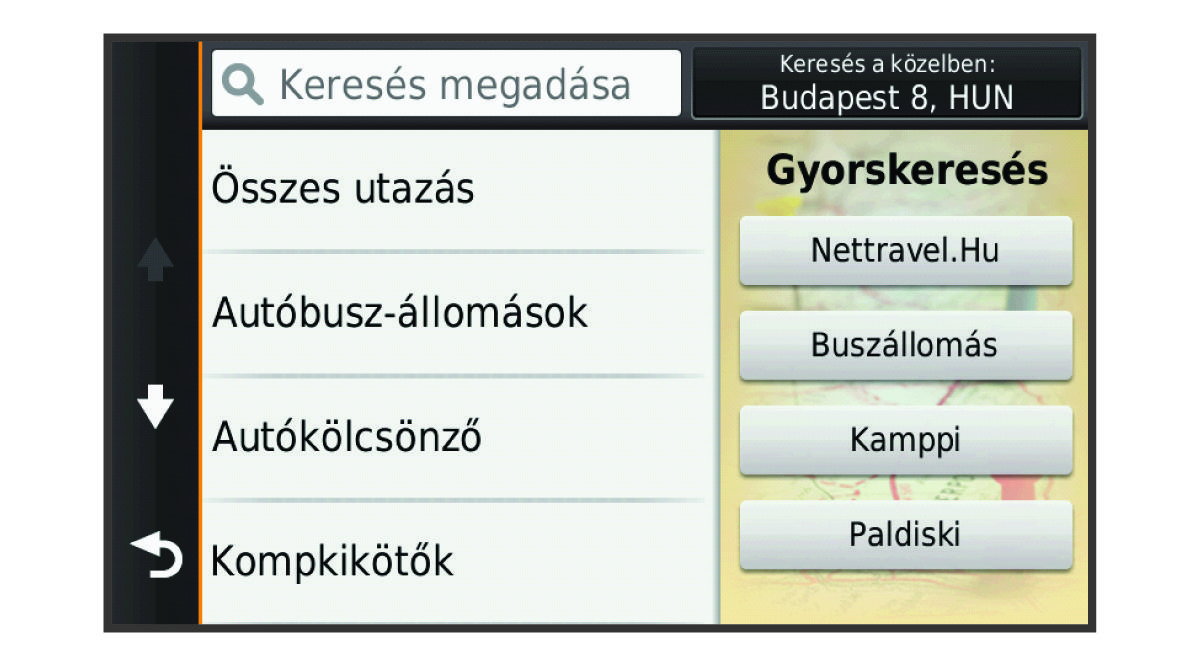 Érdekes helyek keresése után előfordulhat, hogy meghatározott kategóriák esetén gyorskeresési lista jelenik meg a legutóbb kiválasztott négy hellyel.